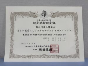 「臨床肛門病学会技能認定施設」および 「大腸肛門病学会認定施設」として正式に認定されました